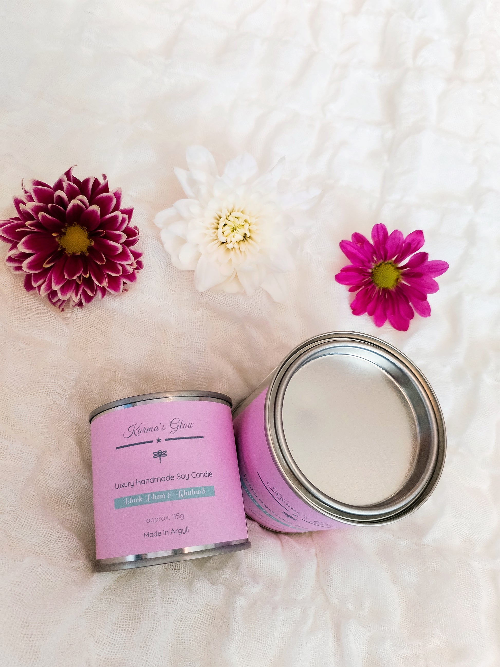 Scented Candle - Luxury Fragrance - Soy Wax - Small Candle Tin - Black Plum & Rhubarb - 115g approx. - Vegan