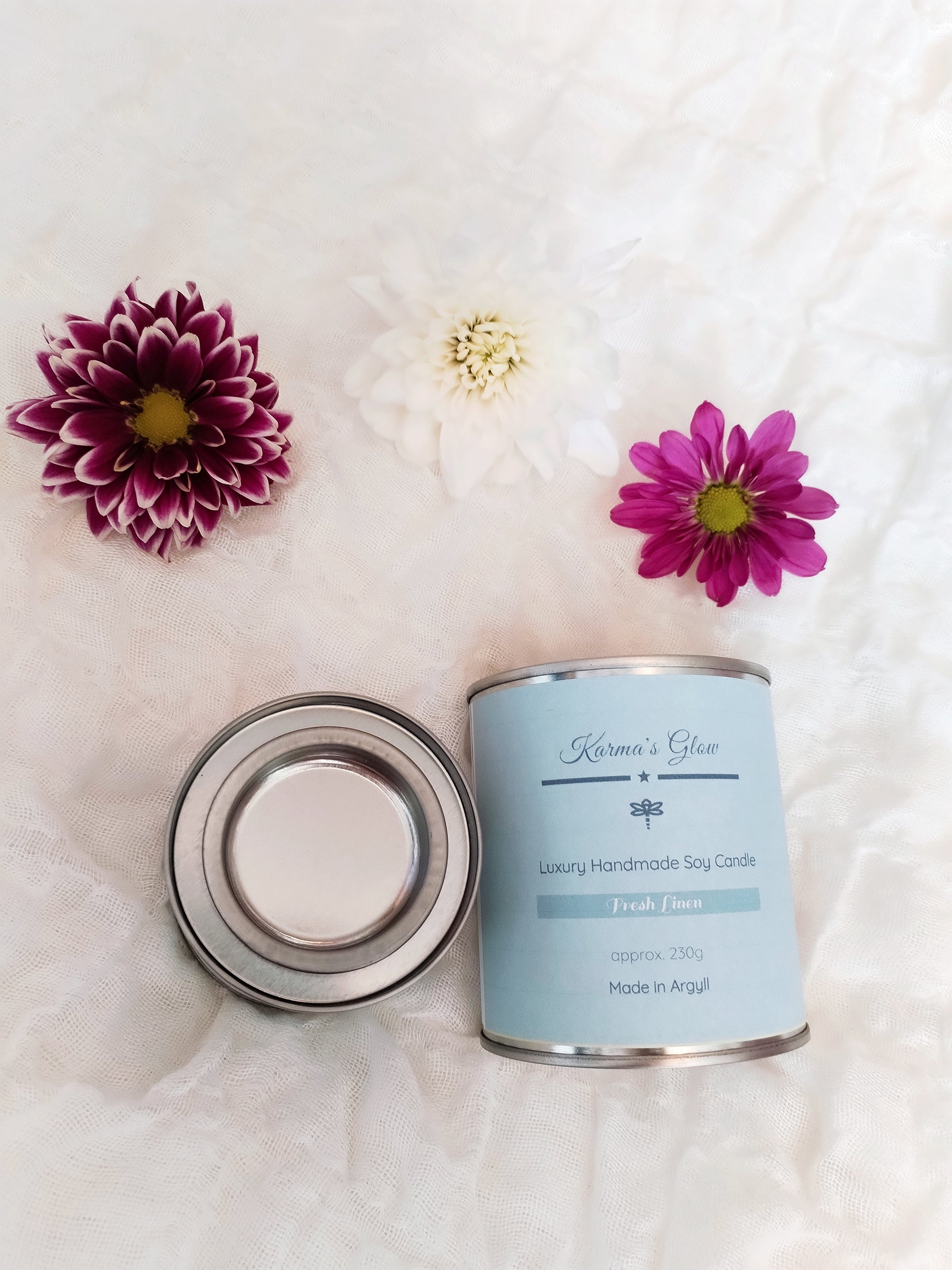 Scented Candle - Luxury Fragrance - Soy Wax -Small Candle Tin - Fresh Linen - 115g approx. - Vegan