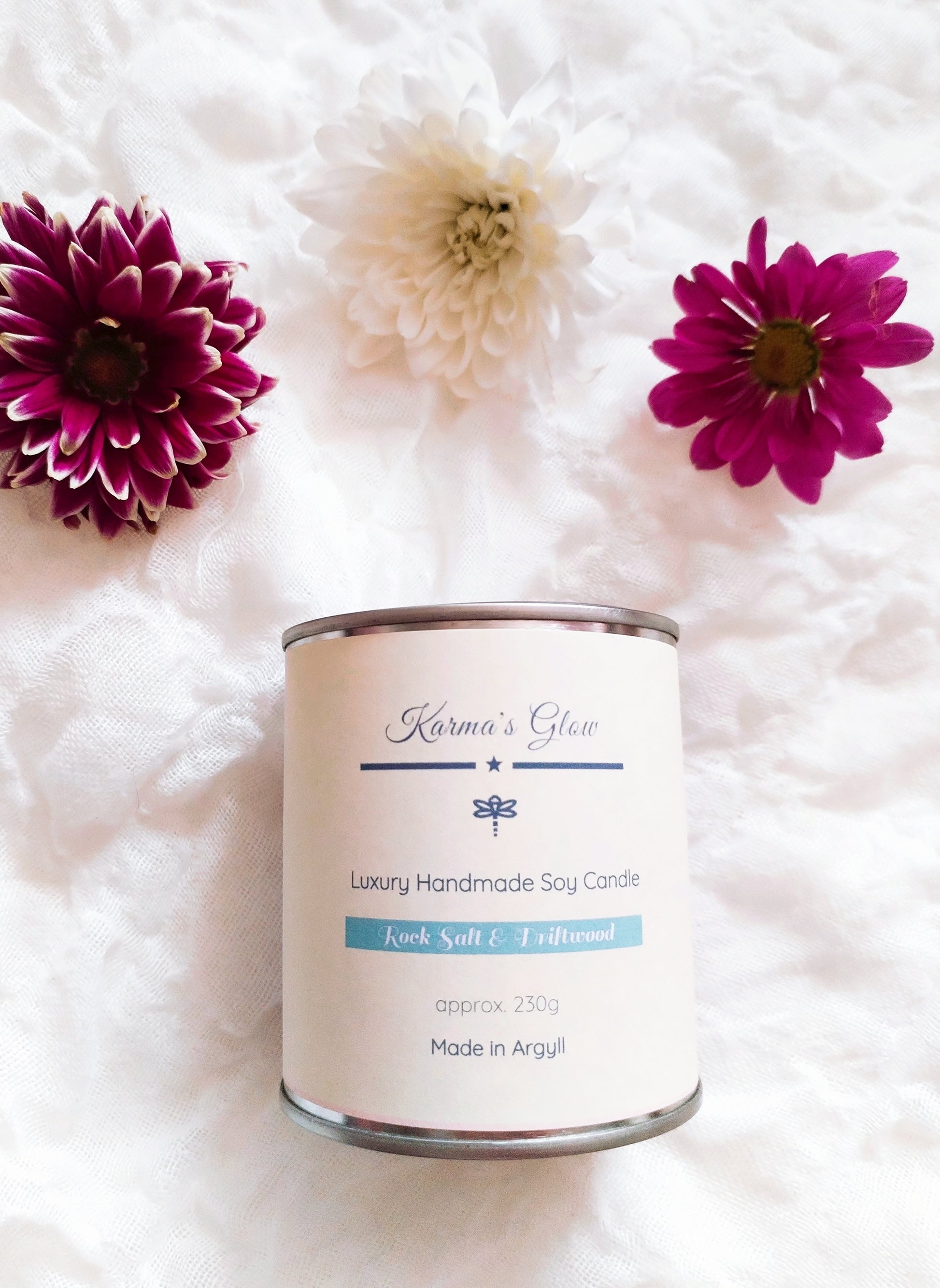 Scented Candle - Luxury Fragrance - Soy Wax - Large Candle Tin - Rock Salt & Driftwood - 230g approx. - Vegan